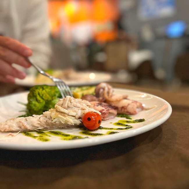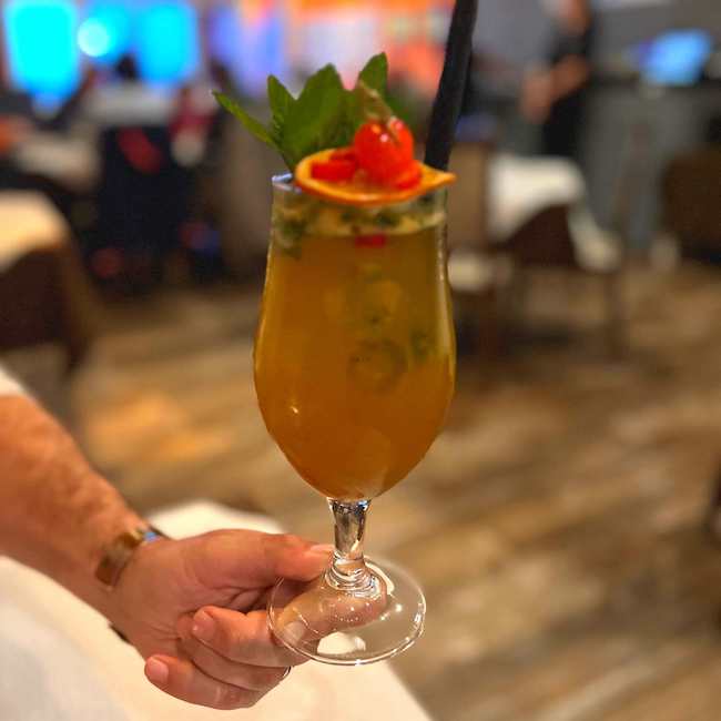 As we chose from the varied cocktail menu and tucked into warm bread with homemade tomato tapenade we were treated to the sweetest live music from Simon Johnson, a hugely popular live singer, and musician on the island. It was special. We opted for an early start at 7 pm, but as the evening went on, the room slowly filled with locals, tourists, and residents in equal measure. With many personally welcomed by Simon, it was clear that not only does Ferdies attract a varied crowd, but customers come back repeatedly which speaks volumes.