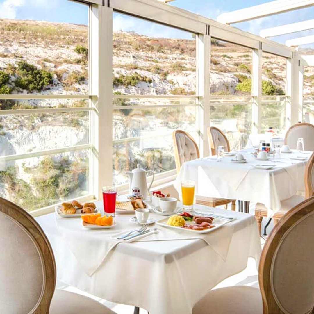 Azure Window Restaurant is surrounded by unparalleled views of Dwejra, including the Inland Sea, Fungus Rock, Dwejra Tower, and up until 2017 the iconic and historic Azure Window. Dwejra boasts jaw-dropping sunsets late summer and transforms into one of the best stargazing spots across the Maltese Islands at sundown. The Azure Restaurant serves a splendid à la carte menu offering both local and Mediterranean cuisine with exquisite fish specialities. The atmosphere is relaxed and lends itself to a leisurely lunch with family and friends or a romantic dinner.