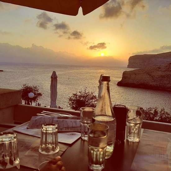 Xlendi is a prime location to enjoy Golden Hour in Gozo. The most dramatic sunsets can be seen between January -May, however year-round this seafront resort remains a favourite. Il-Terrazzo is located to the left of the bay and boasts an elevated laidback terrace making it a perfect choice for a sundowner.